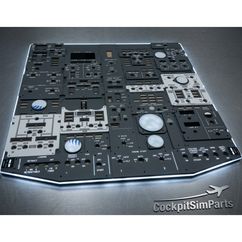 Cockpitsimparts Boeing 737 overhead v3. Our overhead is made from high quality plastic, Professionally sprayed to match Boeing 737 panels. Laser engraved to ensure the best quality to give it that genuine Boeing 737 look.