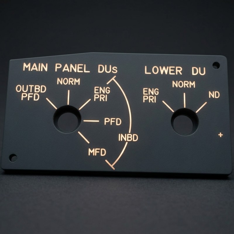 Captains & 1st Officer DU/Main Panel DUS complete control panel for Boeing 737. Made from high quality plastic, Professioanlly sprayed to match Boeing 737 panels. Laser engraving to ensure the best quality to give it that genuine Boeing 737 look. You will receive