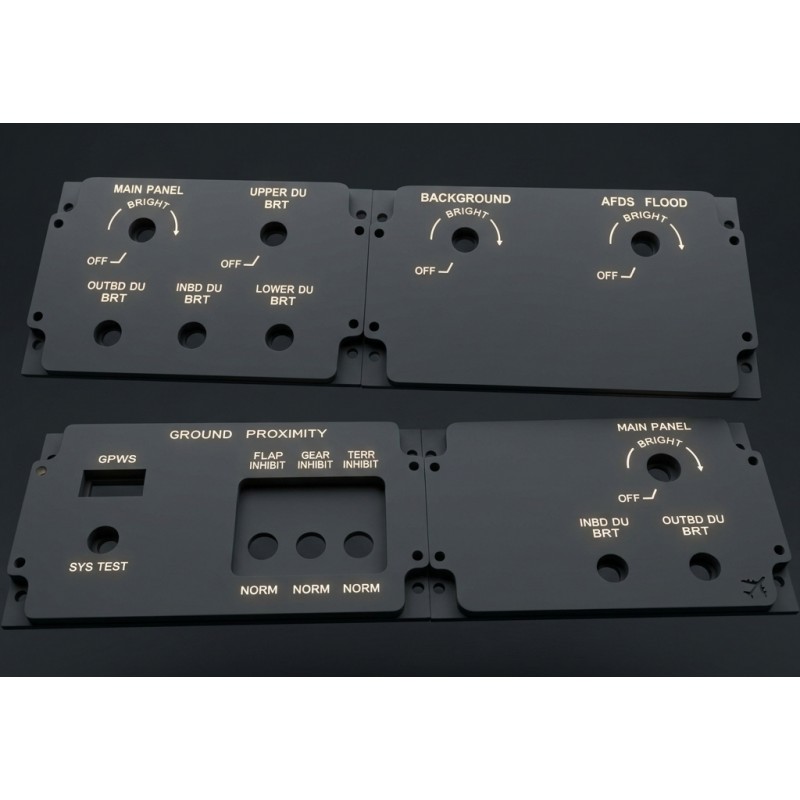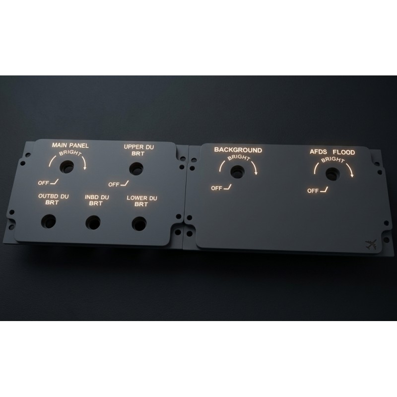 Glare lighting, screens brightness and GPWS control panels for Boeing 737 captain and 1st officer set.