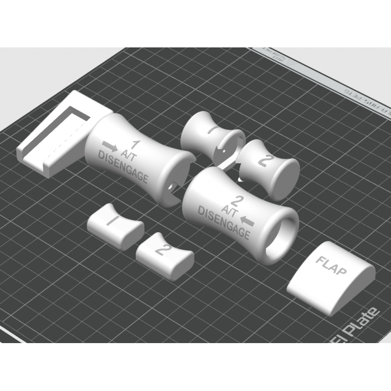 Full set of Boeing 737 throttle knobs supplied as two 3mf/STL files: one version with engraved markings, and another blank version for those who prefer to apply their own decals or stickers.